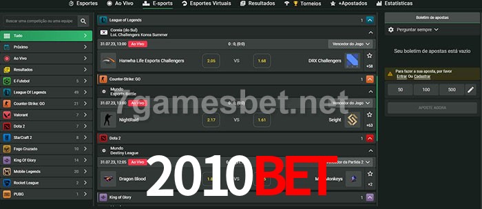A aposta 2010Bet oferece aos jogadores a experiência mais conveniente de apostas em eSports!